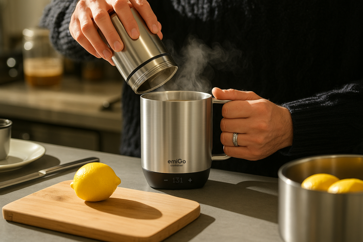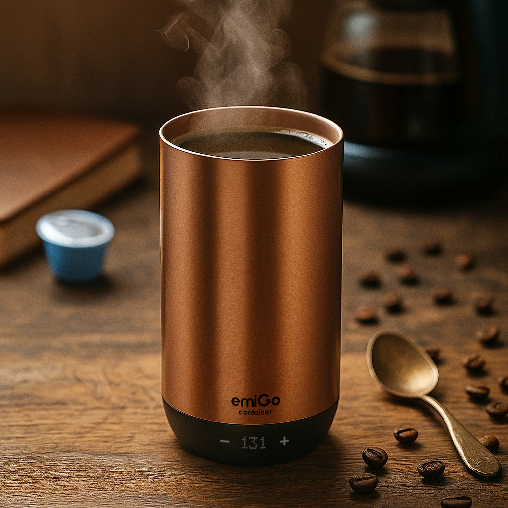 emigo container的技术不仅仅是一个咖啡杯加热器,通过将加热组件直接集成到杯子中,并利用精确传感器实现完美的温度控制。